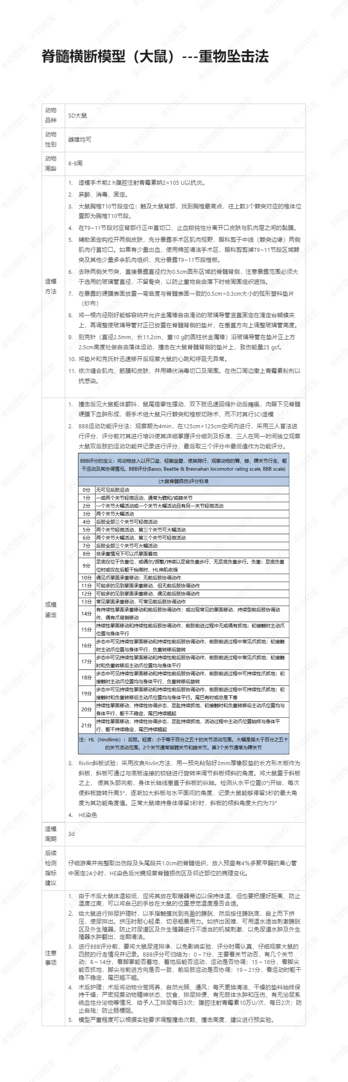 脊髓横断模型(大鼠)---重物坠击法
