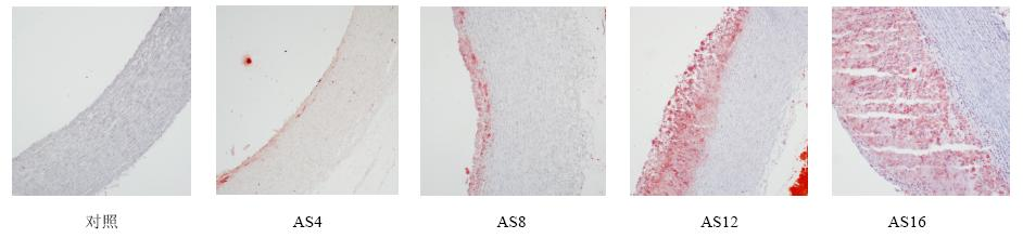 1 不同时期家兔主动脉油红O染色结果