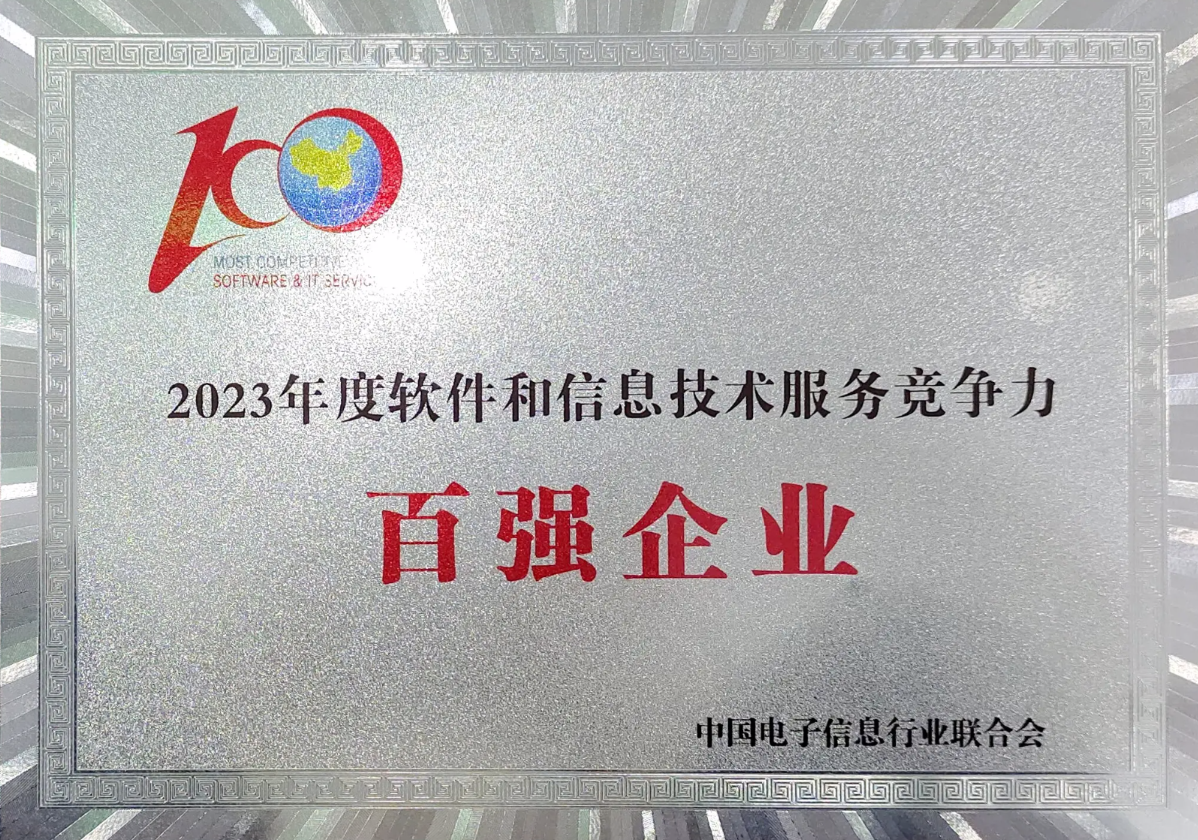 一竞技官网取得“2023年度软件和信息技术 服务竞争力百强企业”称号